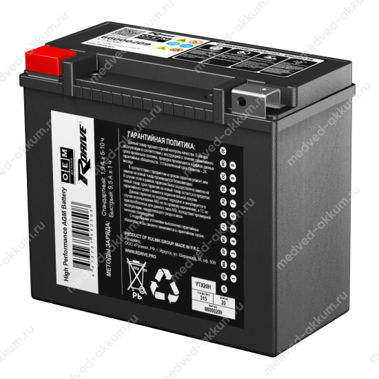 RDrive OEM AGM 20 Ач YTX20H (66000209) пр.